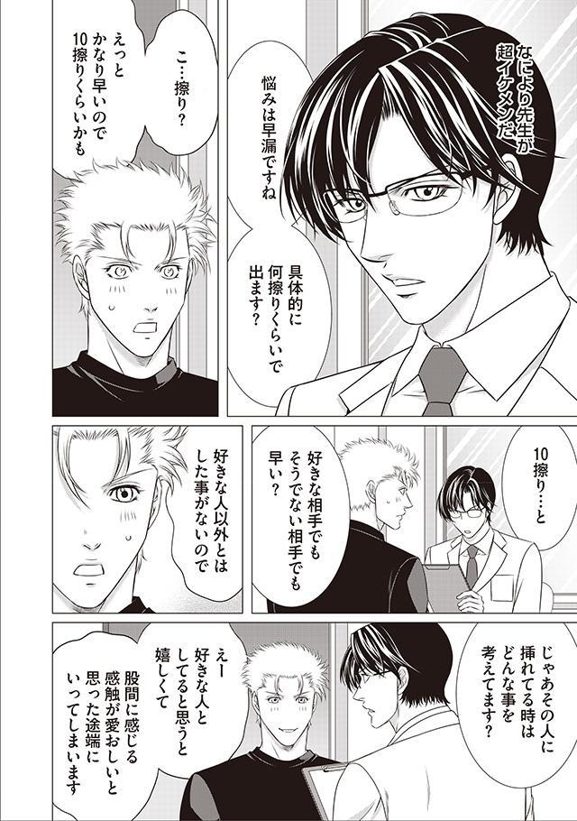 下半身のお悩みを解決するゲイ専門のクリニック。早漏に悩む野口はえっちな治療を施される